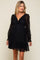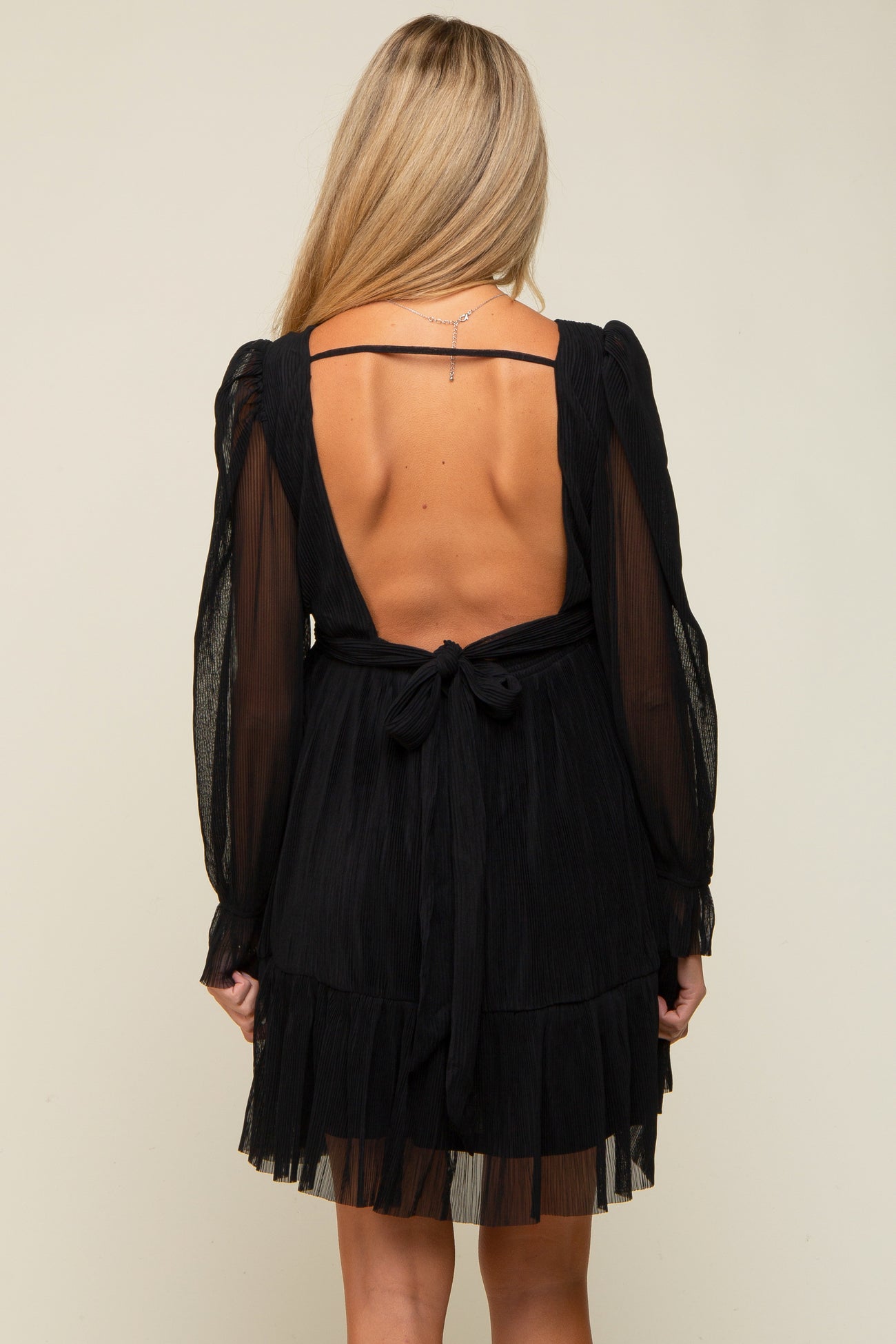 Black Pleated Knotted Long Sleeve Maternity Dress