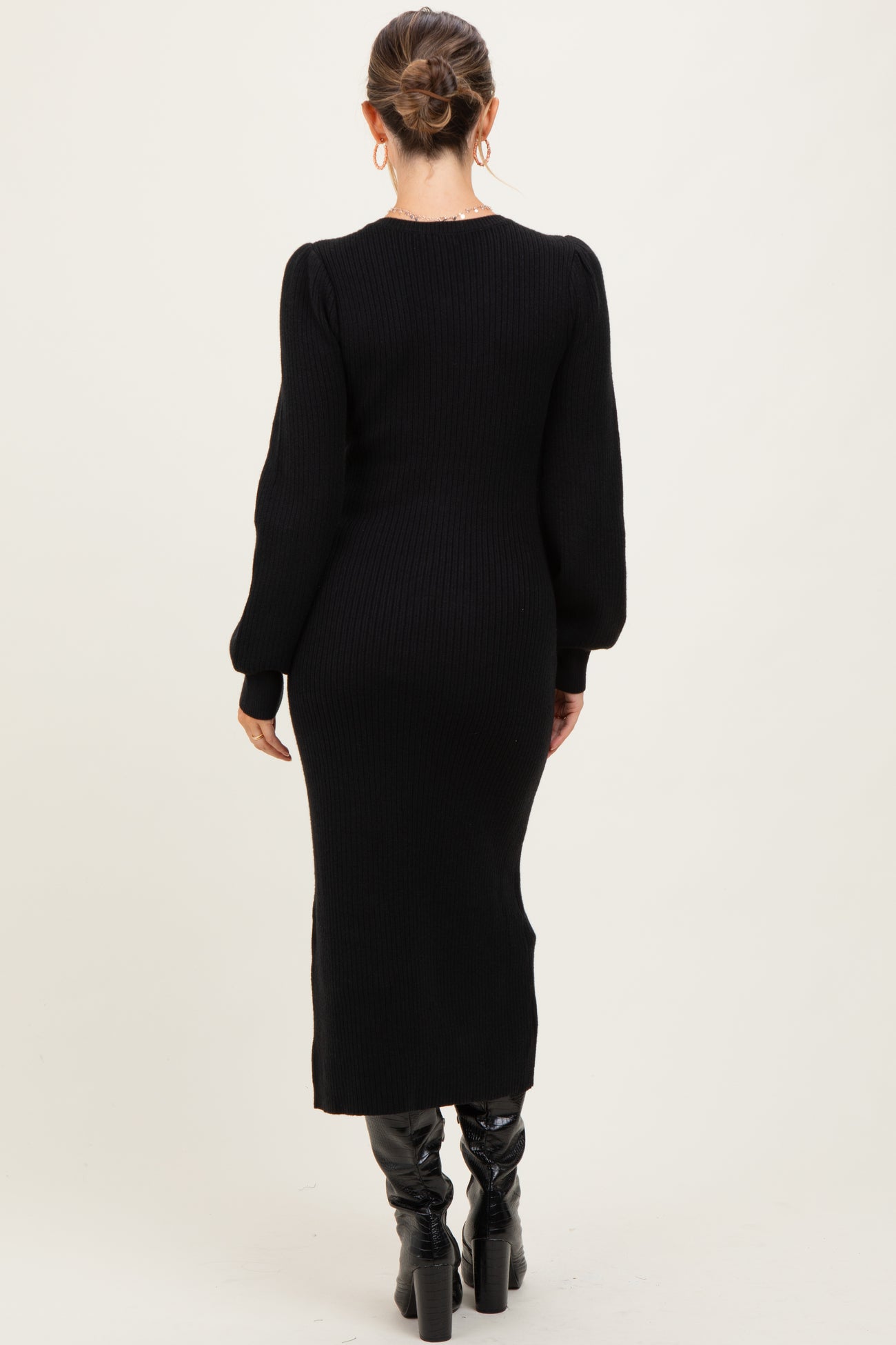 Black Ribbed Bow Detail Maternity Midi Sweater Dress