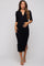 A solid ribbed maternity knit dress with a collared neckline and two small side slits.