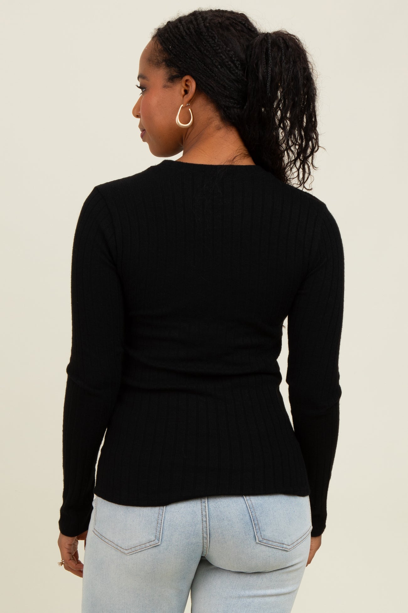 Black Ribbed Long Sleeve Top