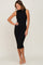 A solid lightweight ribbed sleeveless midi dress with a mock neckline.