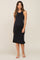 A ribbed sleeveless maternity midi dress. Features a rounded neckline and side slits.