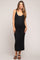 A ribbed knit maternity midi dress featuring a scoop neckline.