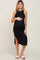 Black Ribbed Sleeveless Side Slit Maternity Midi Dress