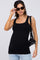 A solid maternity tank top featuring a squared neckline and ruched sides.
