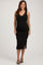 A solid ribbed maternity dress with a v-neckline, side ruching and two side slits.