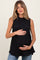 Black Ruffle Mock Neck Maternity Sleeveless Blouse