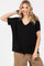 A solid top featuring short dolman sleeves and a rounded v-neckline.