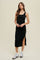 A solid side ruched dress that includes short sleeves, round neckline, and side slit.