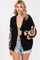 Elevate your casual style with this Black Sleeve Crochet Cardigan. Featuring a cozy open-knit design, this cardigan boasts beautifully detailed crochet sleeves with warm earth tones and pops of soft peach and cream for a boho-chic vibe. The relaxed fit and ribbed edges make it perfect for layering over your favorite tops or dresses. Pair it with denim shorts or jeans for an effortless, trendy look. Lightweight yet warm, this versatile cardigan adds texture and color to your wardrobe all year round. Embrace comfort and style wherever you go!