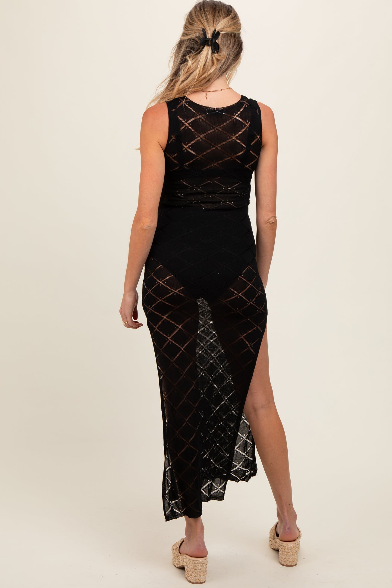 Black Sleeveless Crochet Double Side Slit Maternity Cover Up