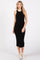 A sleeveless ribbed fitted dress. Rounded neckline.