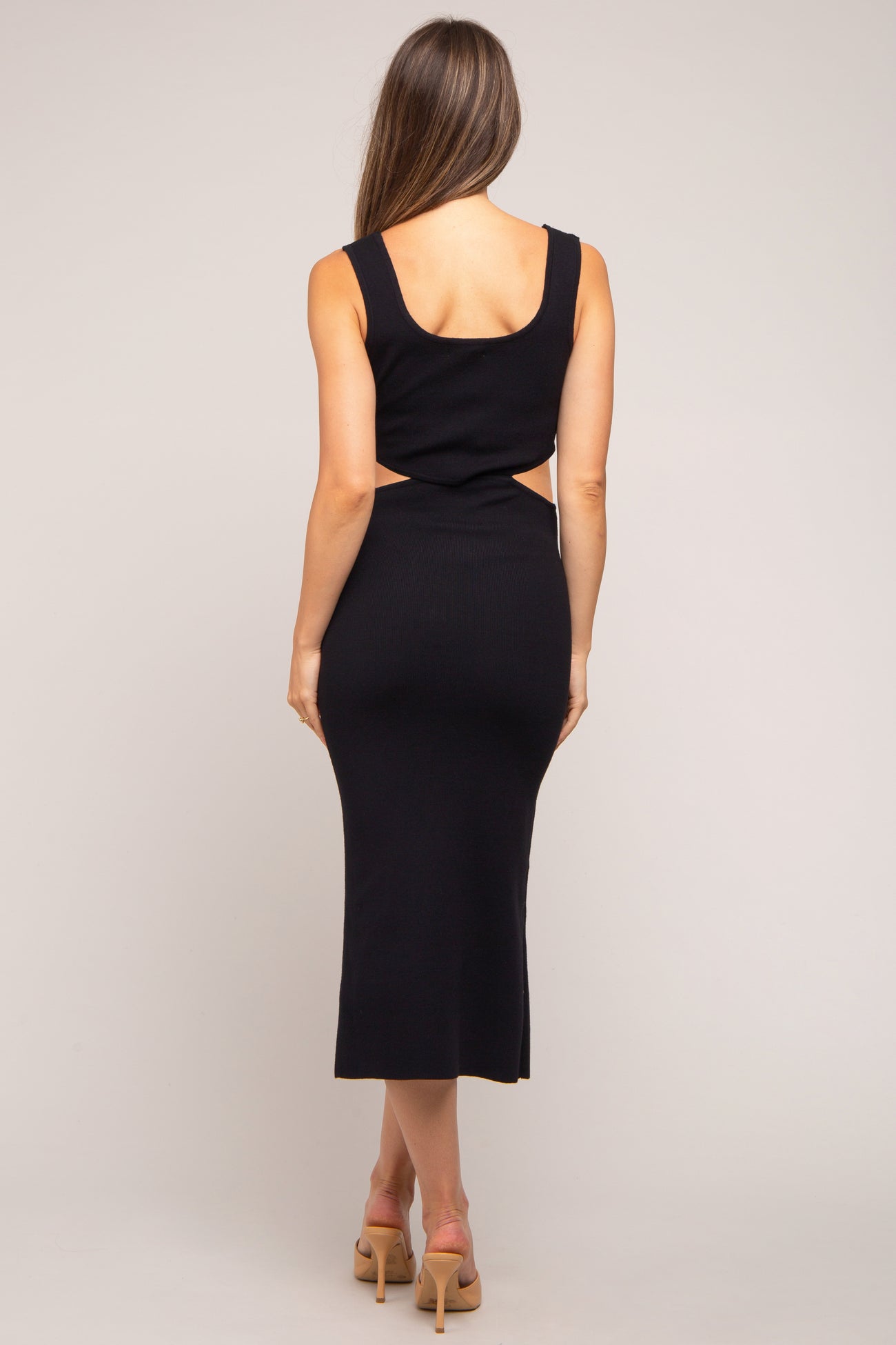 Black Sleeveless Side Cutout Maternity Midi Dress