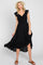 Black Smocked Ruched Ruffle Hem Maxi Dress
