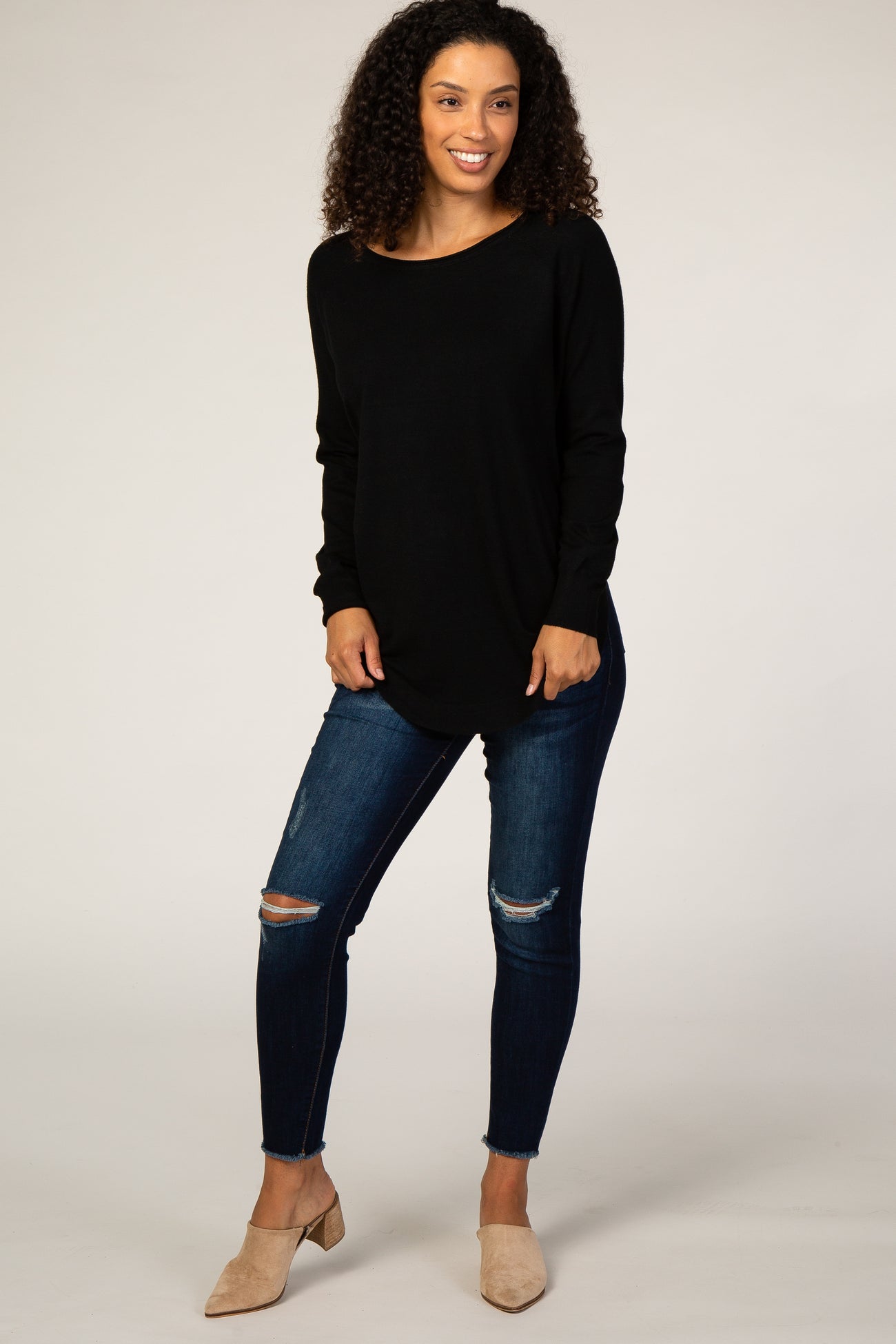 A super soft sweater with a rounded neckline and hemline.