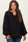 Black Solid Rib Long Sleeve V-Neck Oversized Maternity Tunic Top