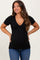 Black Solid Ribbed Short Sleeve V-Neck Basic Maternity Top