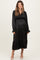 Black Solid V-Neck Satin Long Sleeve Maternity Maxi Dress