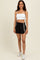Stay active and stylish with our Black Stripe Detail Active Shorts. Designed for comfort and performance, these shorts feature a sleek black base with contrasting white stripes along the sides for a sporty edge. The elastic waistband ensures a secure fit while allowing easy movement during workouts or casual outings. Crafted from lightweight, breathable fabric, these shorts keep you cool and comfortable all day long. Perfect for running, gym sessions, or just lounging in style. Pair them with your favorite crop top and sneakers for a trendy, effortless look. Available in multiple sizes.