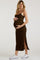 Details A striped ribbed knit maternity midi dress featuring a rounded neckline with contrast trim, adjustable cami straps and a side slit. Content + Care