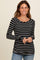 Black Striped Ruched Side Long Sleeve Top