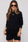 A maternity set that includes a sweater top and knit shorts. Top has a rounded neckline and long drop shoulder sleeves. Shorts include an elastic waistband.