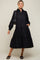 A solid long sleeve button down maternity maxi dress in a tiered style. Pocketed.