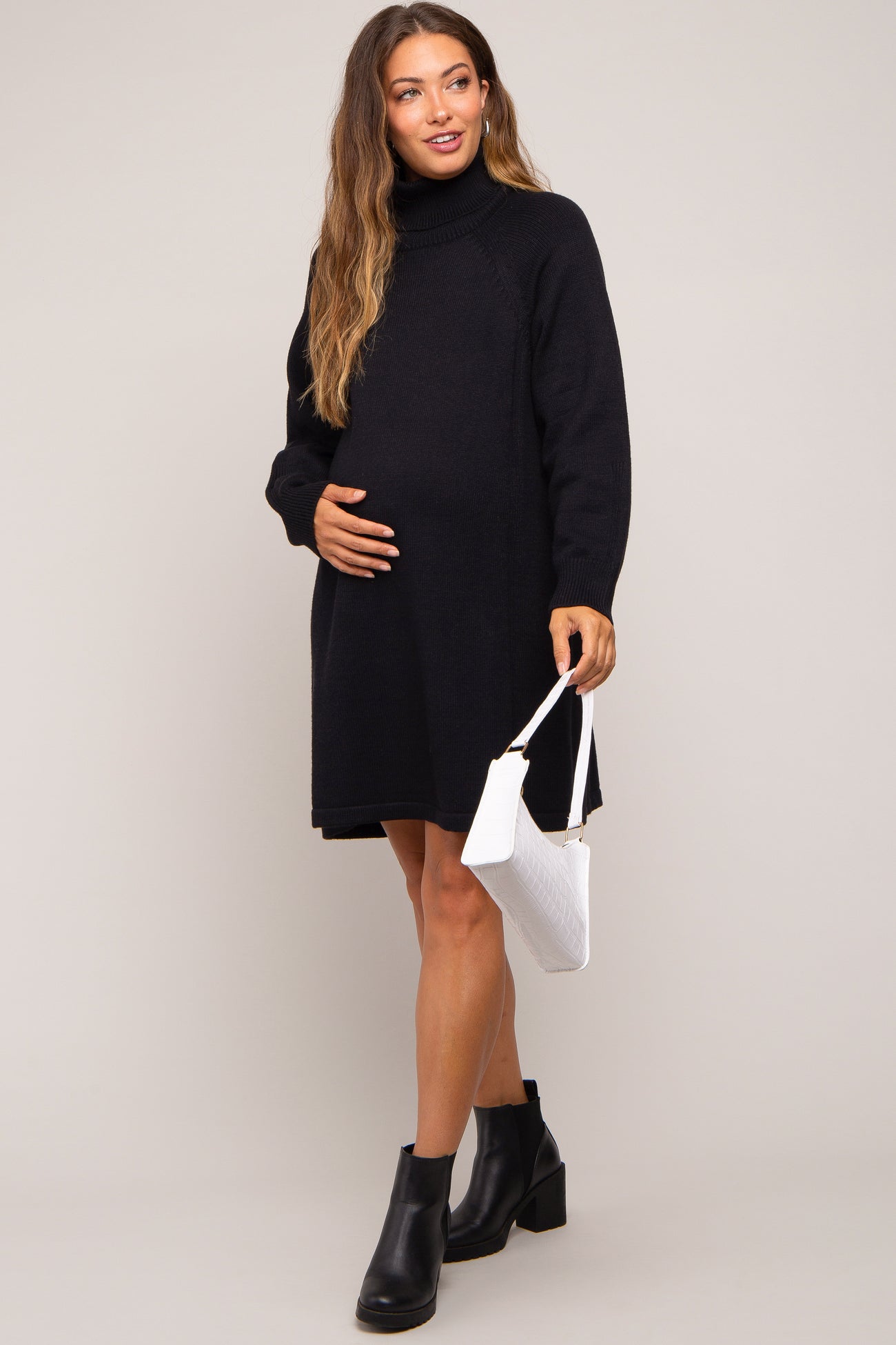 Black Turtleneck Long Sleeve Maternity Sweater Dress