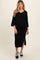 A knit maternity skirt set featuring a cropped top with a v-neckline and dropped shoulder long sleeves and a midi skirt with an elastic waistband.