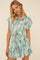 Blue Abstract Collared Button Front Self Tie Romper