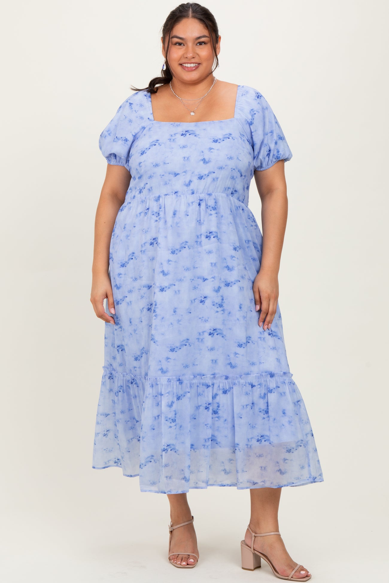 Embrace effortless elegance in our Blue Abstract Puff Sleeve Ruffle Detail Plus Midi Dress. This stunning dress features a soft blue abstract print that adds a dreamy touch to your wardrobe. The flattering square neckline and puff sleeves create a romantic silhouette, while the ruffle hem adds playful movement to every step. Designed with plus sizes in mind, this midi dress offers a comfortable fit that celebrates your curves. Perfect for daytime outings or special occasions, pair it with your favorite sandals or heels for an effortlessly chic look. Feel confident and stylish wherever you go!