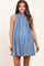Blue Chambray Pleat Detail Sleeveless Maternity Shirt Dress