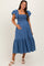 Blue Chambray Smocked Flutter Sleeve Maternity Dress