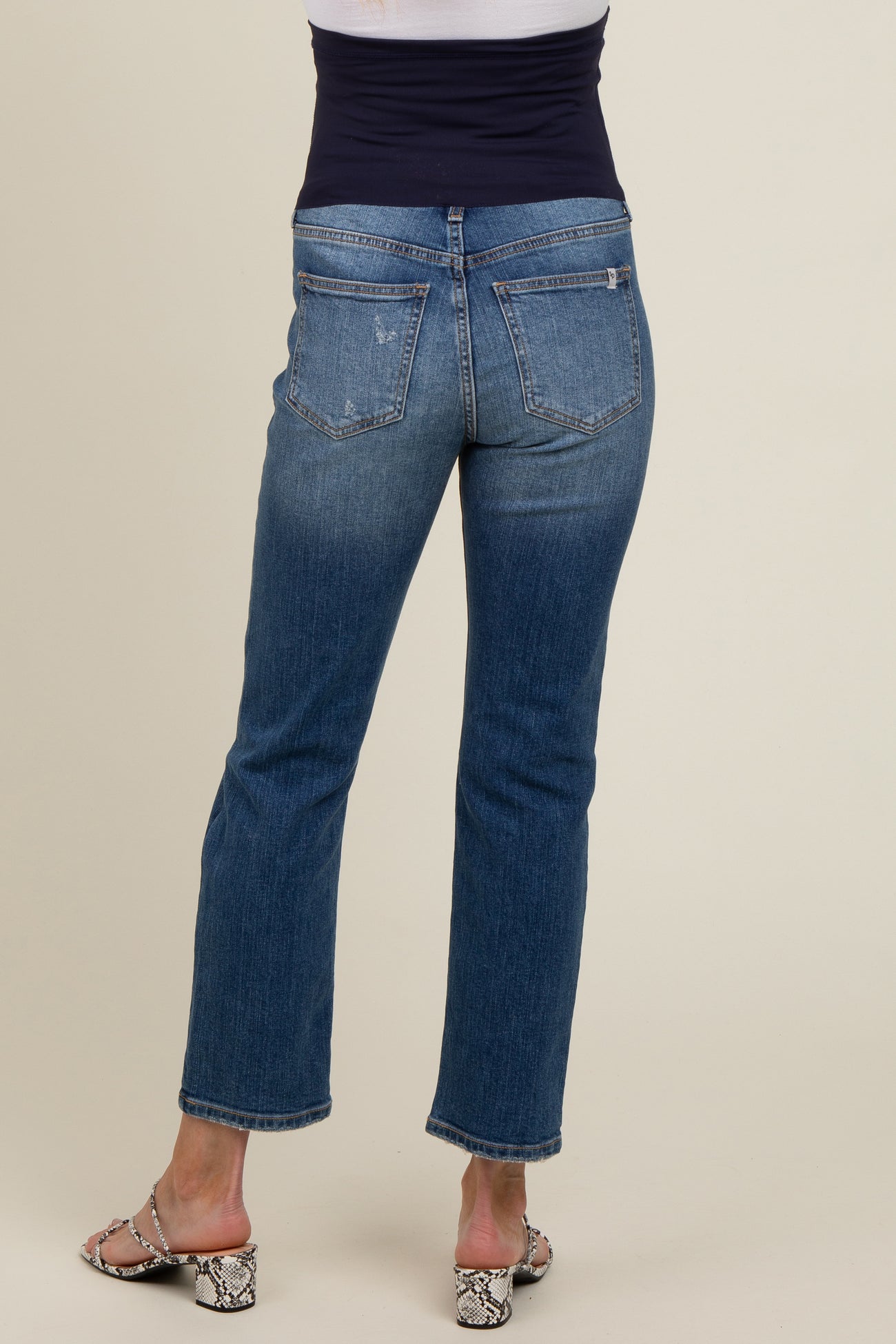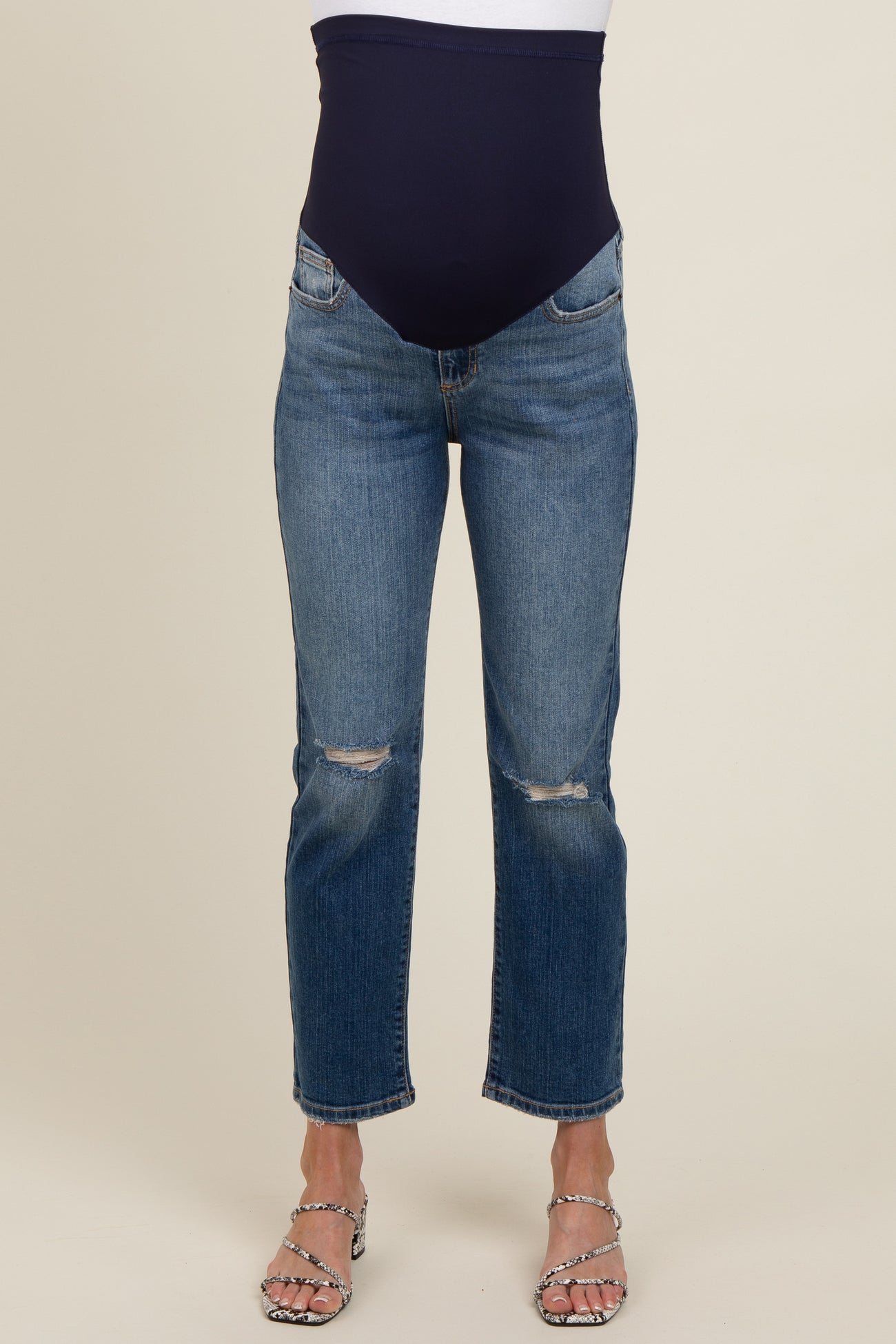 Blue Distressed Knee Slim Fit Maternity Jeans