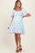 Blue Embroidered Detail Smocked Tie Back Maternity Dress