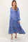 Blue Embroidered Long Sleeve Maternity Maxi Dress
