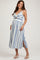Blue Embroidered Striped Front Cutout Side Slit Maternity Midi Dress