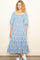 Embrace timeless elegance with our Blue Floral Back Cutout Ribbon Tie Maxi Dress. Crafted from lightweight, breathable fabric, this dress features a delicate white floral print on a serene blue background. The square neckline and puffed 3/4 sleeves add a romantic touch, while the elastic waistband flatters your silhouette. The standout back cutout is beautifully accentuated with a charming ribbon tie, offering a subtle hint of allure. Perfect for casual outings or garden parties, pair it with sneakers for a relaxed vibe or dress it up with sandals. Effortlessly chic and comfortable, this maxi dress is a wardrobe essential for every season.