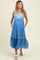 Blue Floral Embroidered Cutout Tie Back Maternity Midi Dress