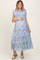 Blue Floral Print Chiffon Tiered Maternity Maxi Dress