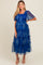 Blue Floral Smocked Tulle Maternity Maxi Dress
