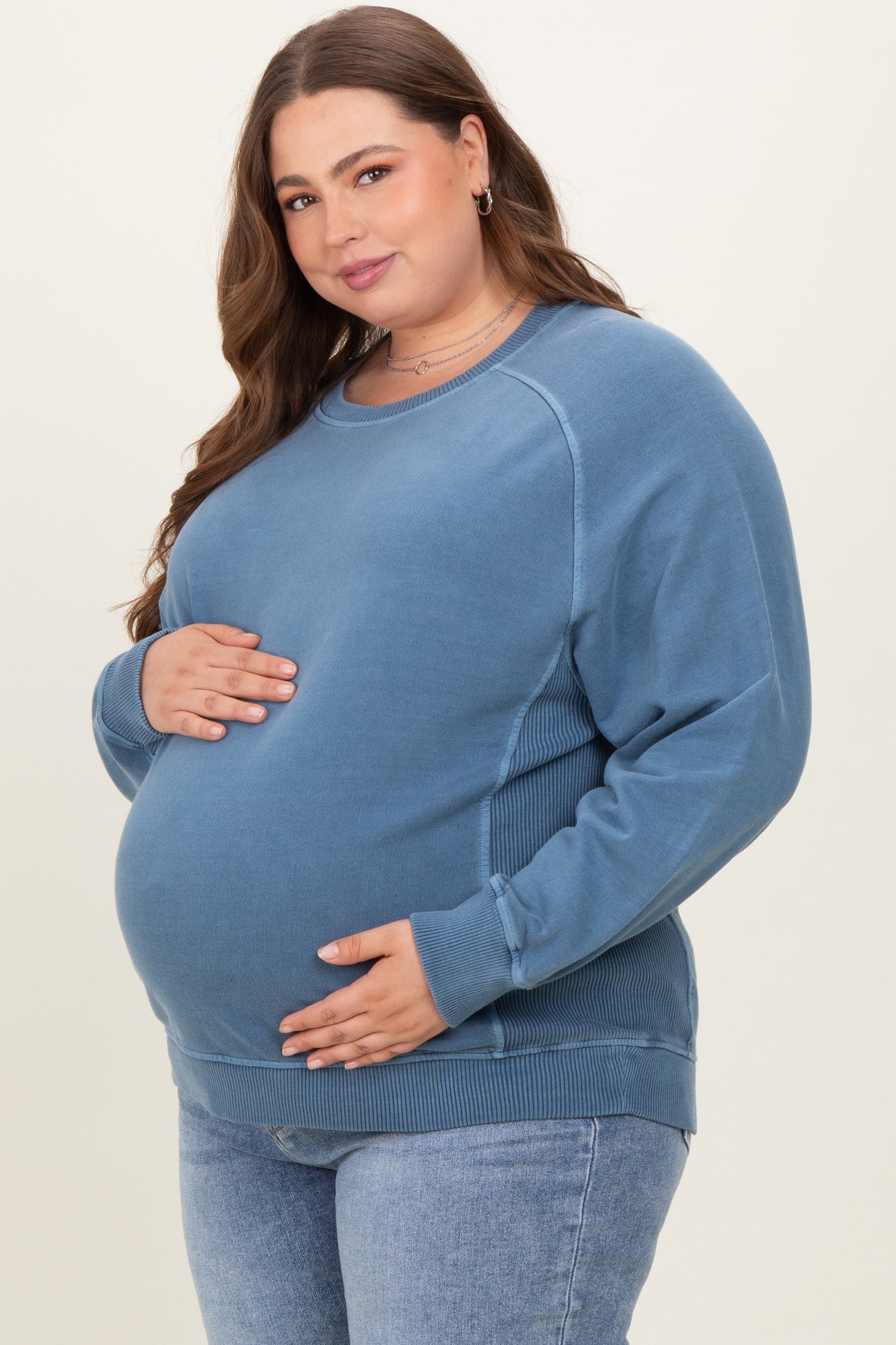 Blue French Terry Vintage Wash Maternity Plus Pullover