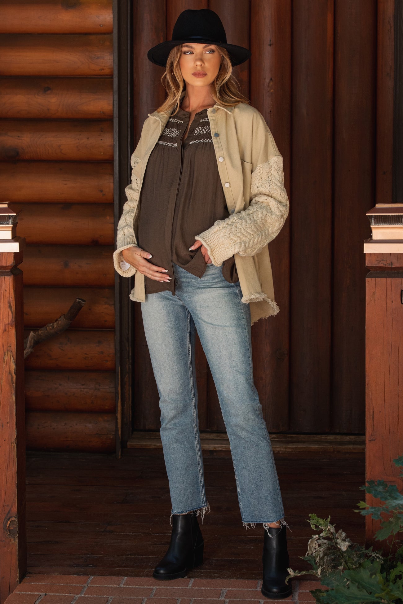 Blue Fringe Hem Cropped Slim Straight Maternity Jeans