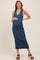Blue Knit Collared Deep V-Neck Maternity Maxi Dress
