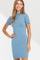 A knit fitted dress featuring a mock neckline and shirt fitted sleeves.