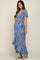 Blue Leaf Print Wrap Maternity Maxi Dress