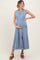 Blue Medium Wash Collared Denim Flare Maternity Midi Dress