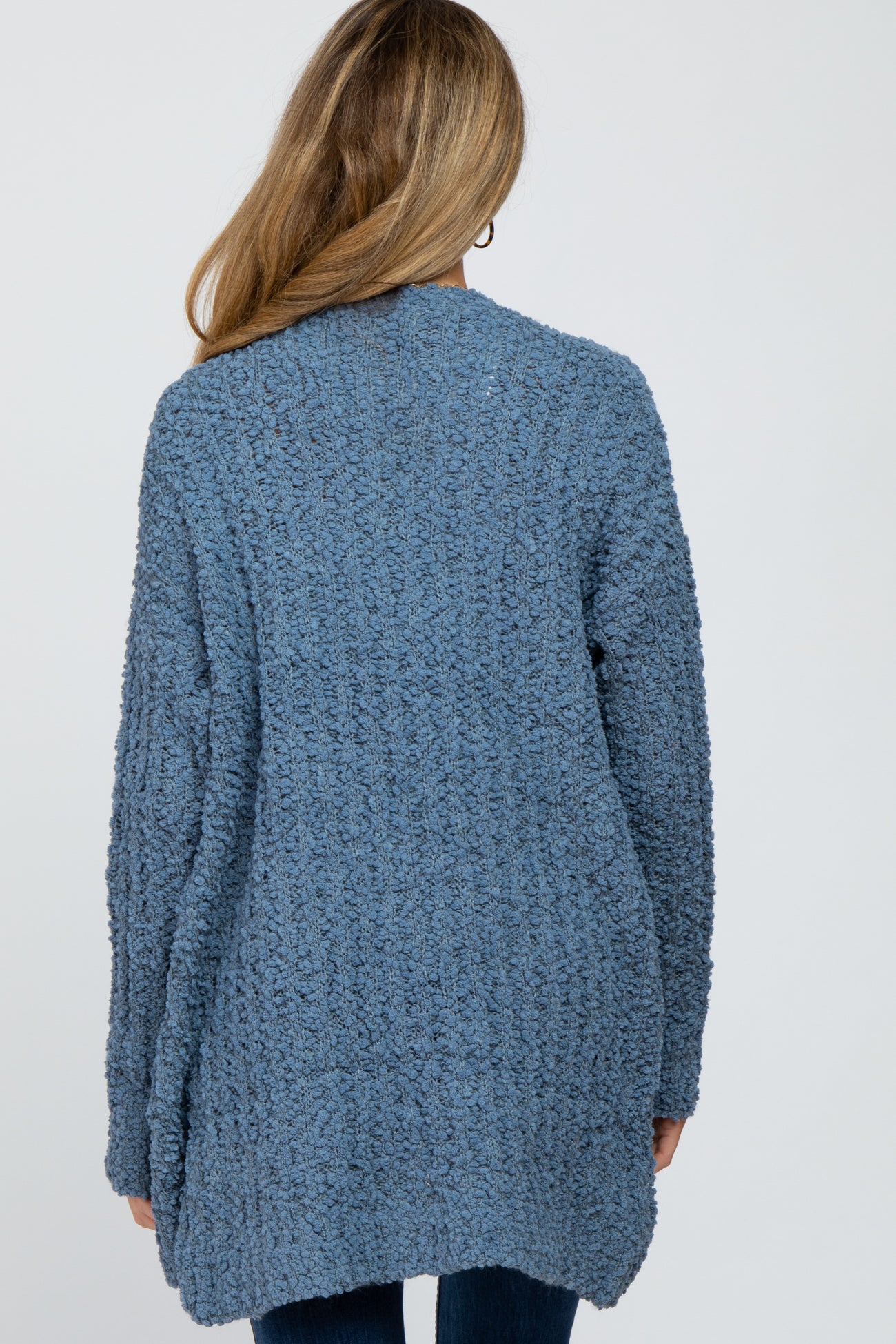 Blue Popcorn Knit Hi-Low Maternity Cardigan