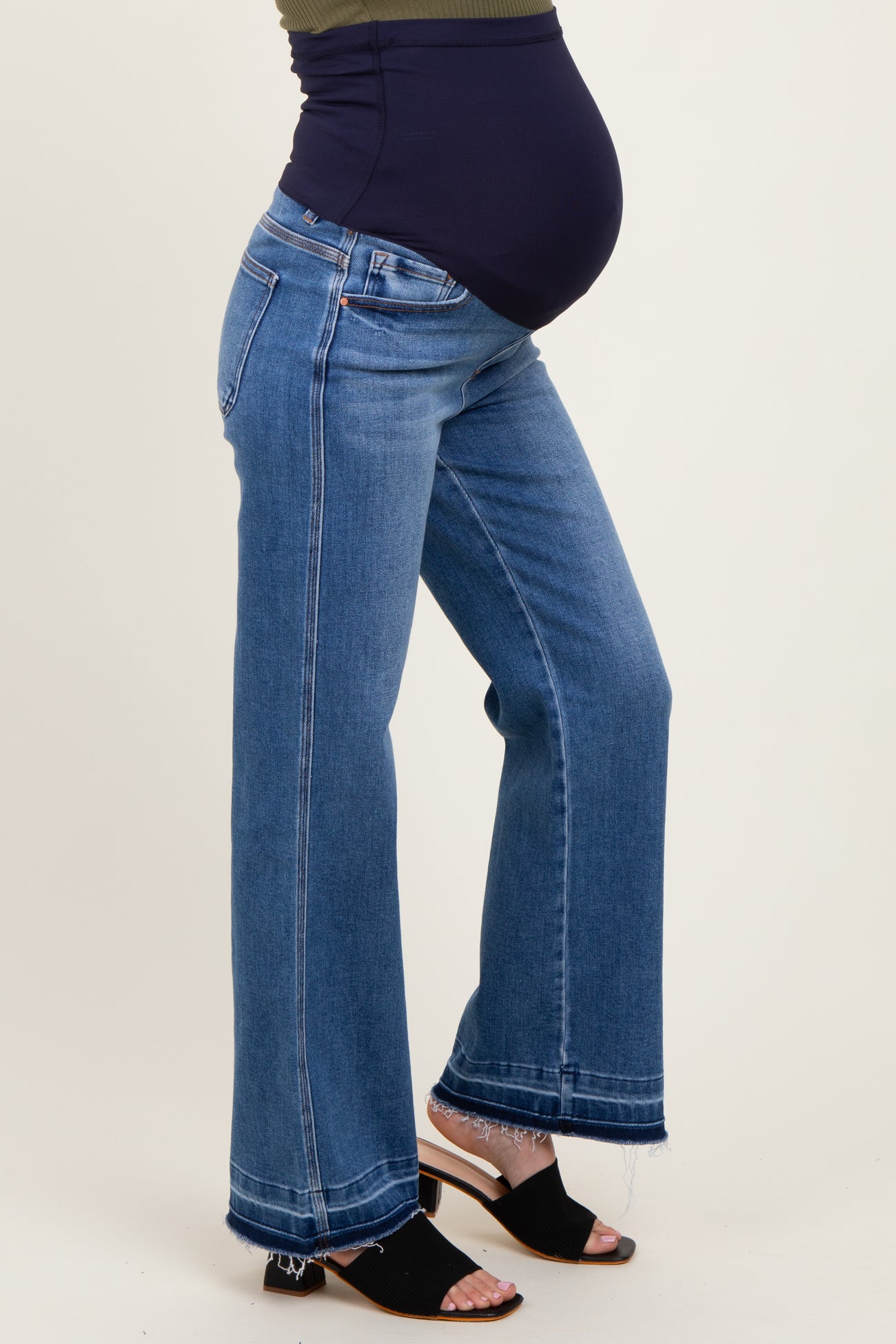 Experience effortless style and comfort with these Blue Raw Hem Distressed Ankle Wide Leg Jeans. Crafted from soft, high-quality denim, they feature a trendy wide-leg cut that flatters every body shape. The raw hem adds a touch of edgy sophistication, while subtle distressing enhances the cool, worn-in vibe. Designed with an ankle-length fit, these jeans are perfect for pairing with your favorite sandals or boots. Ideal for everyday wear or dressing up for special occasions, these maternity-friendly jeans offer a relaxed yet polished look. Embrace laid-back elegance with a modern twist—your new go-to denim essential!
