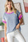 Blue Ribbed Colorblock Detail Short Sleeve Top